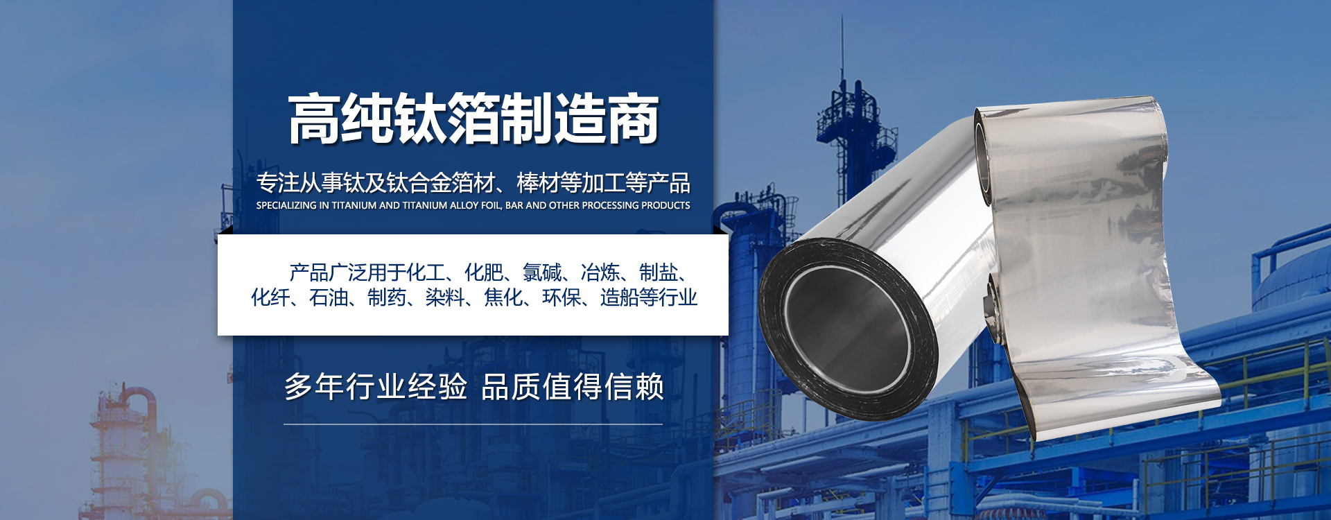 寶雞市榮豪鈦業(yè)有限公司成立于2006年,通過(guò)ISO9001質(zhì)量體系認(rèn)證;依托生產(chǎn),從事新材料,新工藝,新設(shè)備的研發(fā);擁有多項(xiàng)自主知識(shí)產(chǎn)權(quán)的專(zhuān)利,并且每年都在增加;獲得過(guò)高新技術(shù)企業(yè),國(guó)家創(chuàng)新項(xiàng)目基金;我們公司主要產(chǎn)品高精度超薄鏡面卷帶箔材,厚度0.005~0.2寬度200~1250L,材質(zhì)范圍包括鈦,鉬,鋯,鈮,鎳,銅,鋼及其合金的卷帶箔材;銷(xiāo)售高硬度;高純度;高強(qiáng)度耐磨鈦,鎢,鉬,鋯,鉭,鈮及其合金的管,板,棒,絲,環(huán),球;各種規(guī)格鈦及鈦合金卷帶箔材,鈦及鈦合金棒,鈦及鈦合金板現(xiàn)貨庫(kù)存。...
